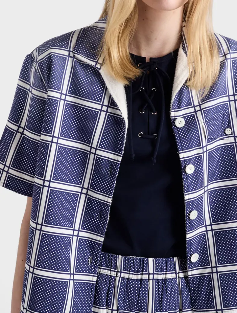 Slim-fit silhouette Scoop neck Fabric laces closure on the front Shoulder straps Fabric triangle logo with sartorial label