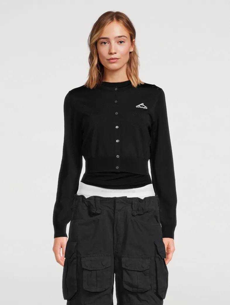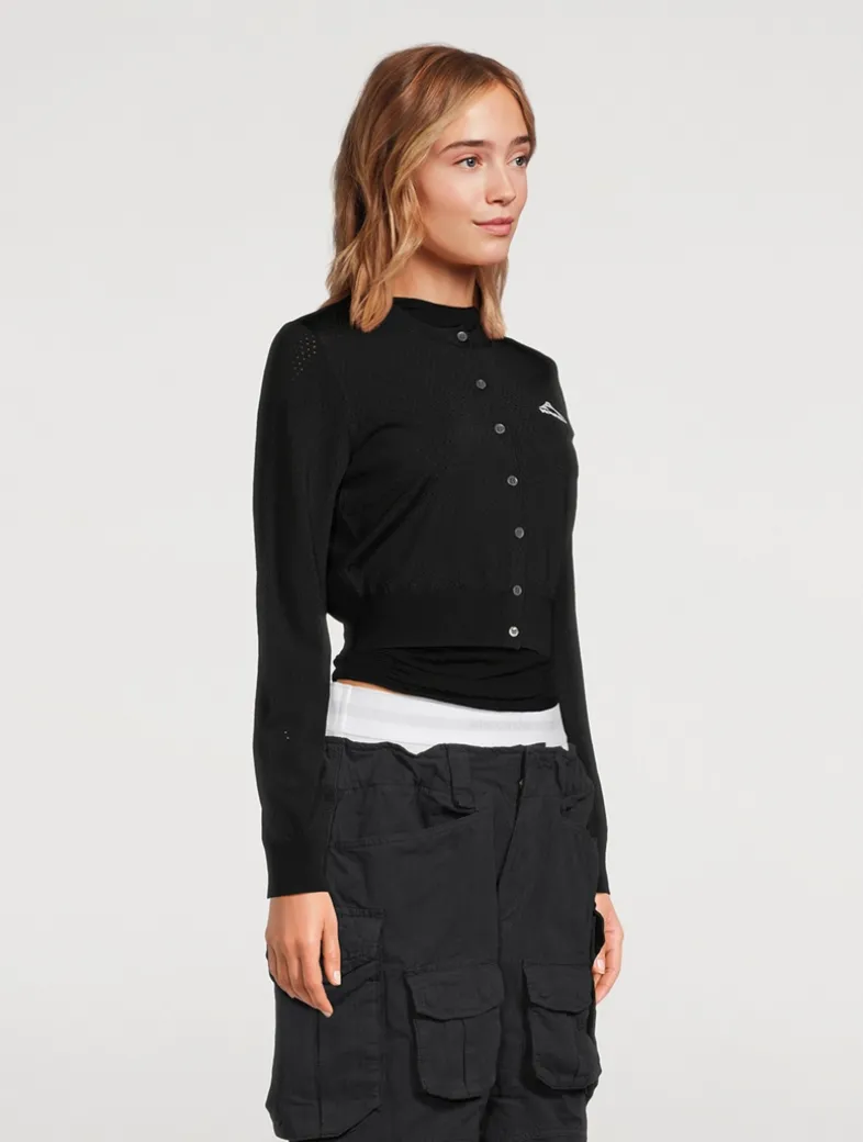 With its athletic mesh construction and 3D logo at the chest, this cardigan features a cropped design and is finished with sweater rib trim.