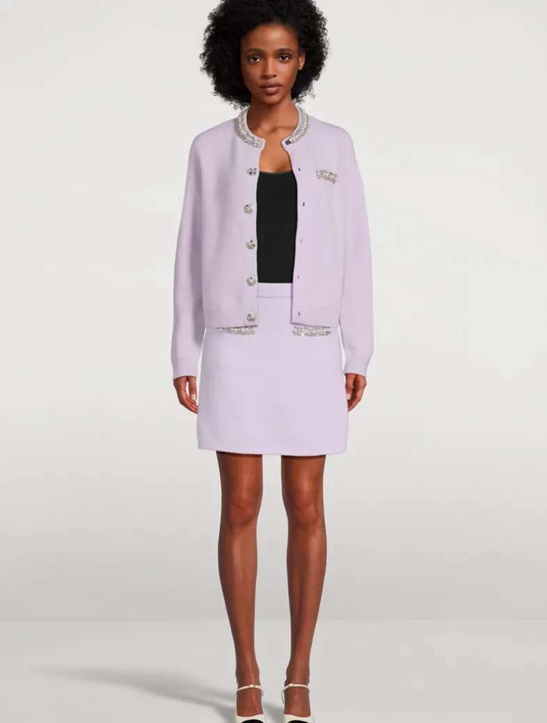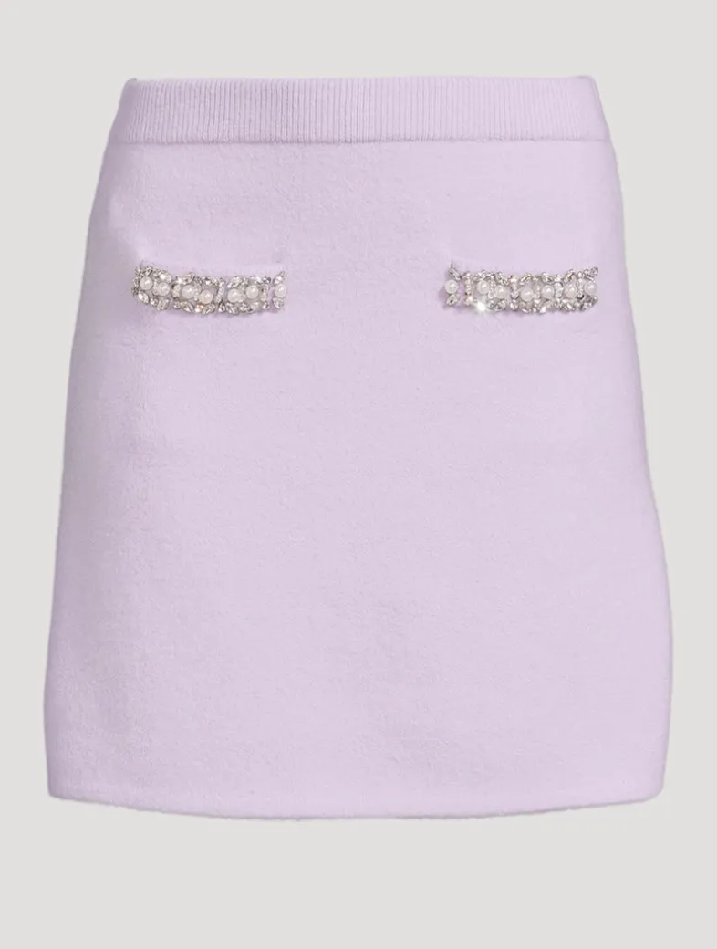 Made from a stretchy soft knit, this alpaca mini skirt features sparkling diamanté trim and an elastic waistband.