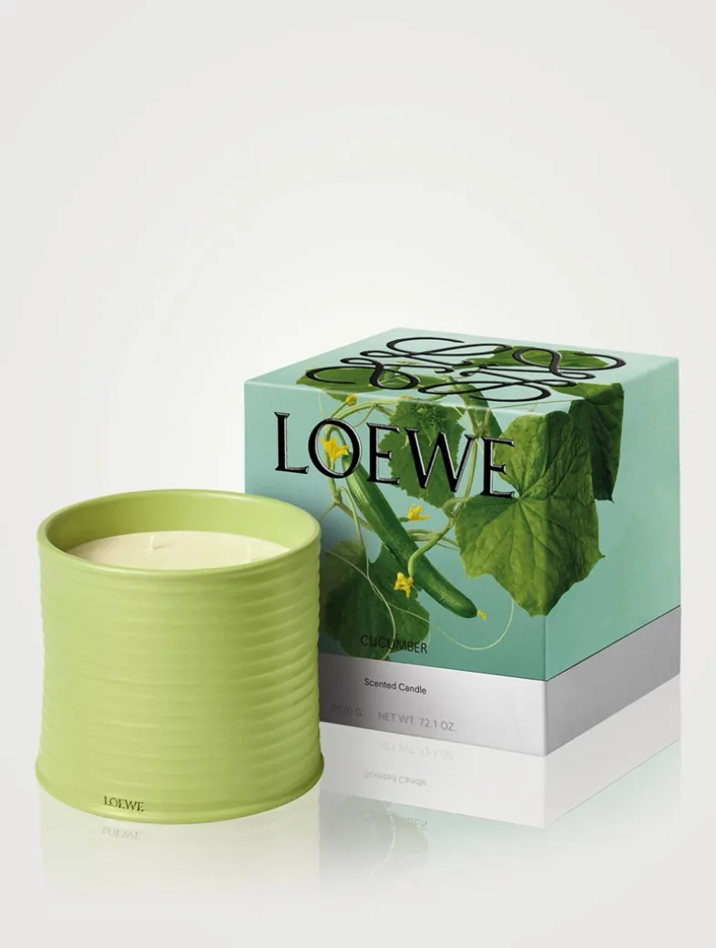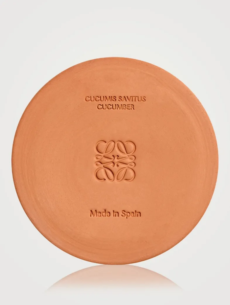 Scented Candle with Cucumber essence, created in collaboration with LOEWE’s global ambassador—the fêted Chinese actor, Leo Wu. The ‘Cucumber’ candle has a high-intensity fragrance with an aquatic scent evoking the fresh olfactory profile of a juicy cucumber, just-picked from the vine. It reveals fresh mint notes once lit. Crafted in natural wax with one cotton wick, the candle is presented in a glazed terracotta vessel with a stamped base. All LOEWE Home Scents items are olfactory creations that highlight nature’s most natural and pure scents. Note: Due to their handcrafted nature, no two Home Scents Scented Candles are exactly the same.