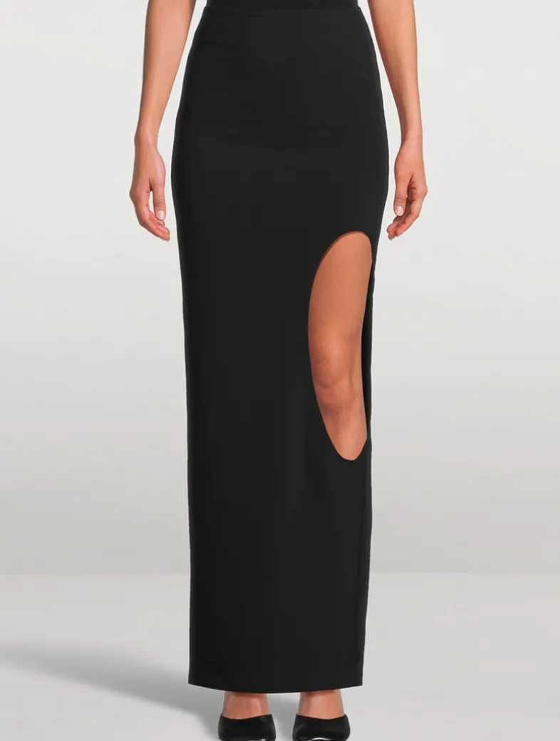 Cut to a slim silhouette, this high-rise maxi skirt features a sharp cut-out detail on the side and a high back split. Made to slip on with ease, it brings a subtle edge to streamlined dressing.