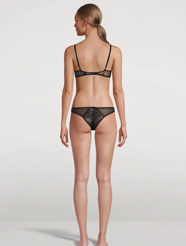 Look no further than the Dahlia collection to differentiate your everyday underpinnings with the softest patterned French lace. Too beautiful to keep hidden, it’s perfect for layering under clothes that let the lace peek through. The Dahlia Lace Panty features panels of floral French lace and soft mesh enclosed by a scalloped French lace trim.