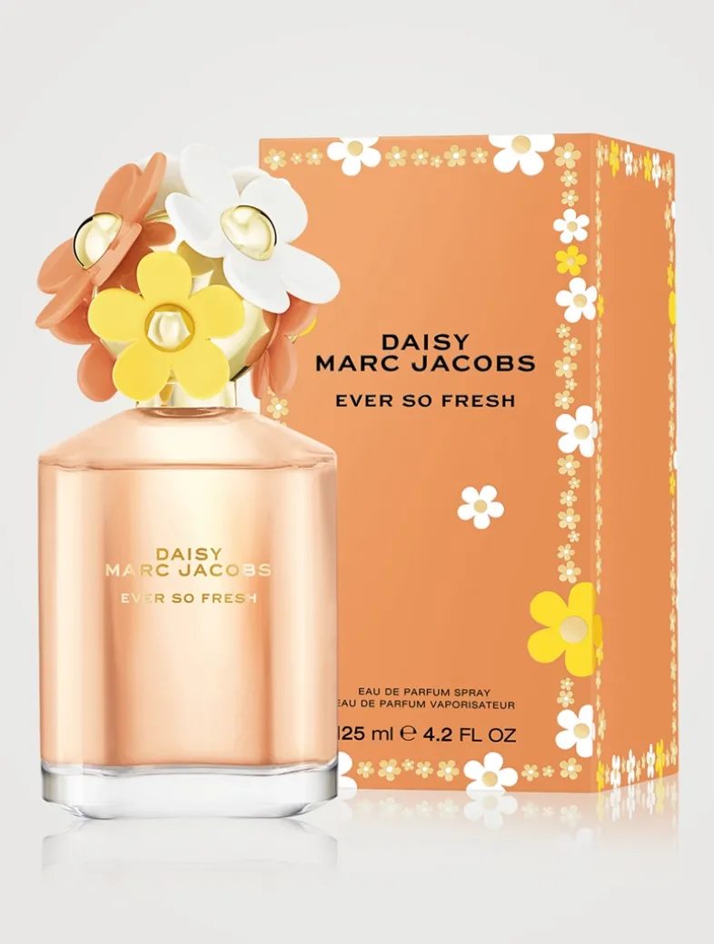 Marc Jacobs Daisy Ever So Fresh is a long-lasting scent that has a bouquet of juicy citrus notes that capture the whimsical feeling of dappled sunshine, with radiant rose water adding an innate floral splash to its heart. Cashmere woods wrap the fragrance in an airy, yet energetic, warmth.