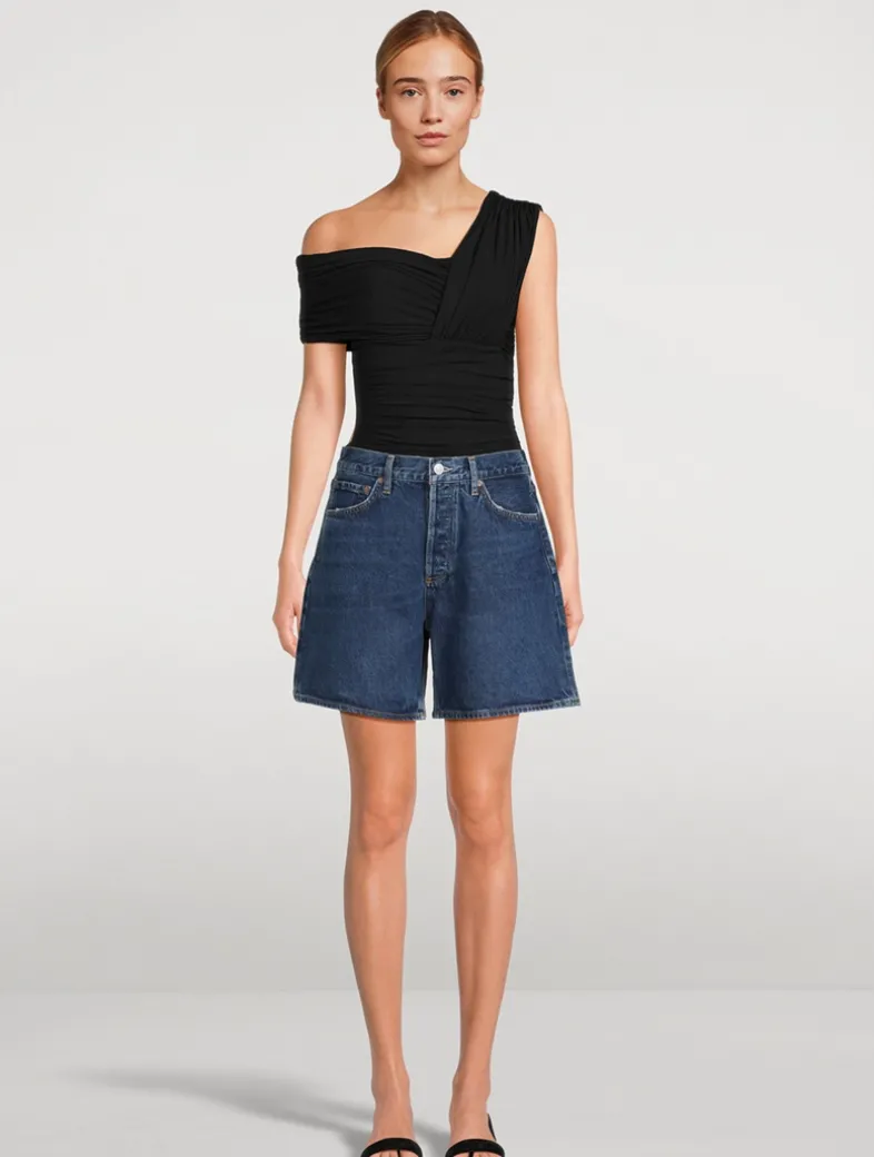 These high-rise denim shorts offer an easy fit with a neat, wide-leg opening and an angled outseam. Crafted from a rigid, non-stretch regenerative cotton with a soft hand feel.