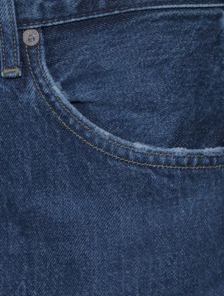 These full-length jeans feature a waist-accentuating high rise, a relaxed cut through the hips, and a wide leg. Crafted from a zero-stretch regenerative organic cotton with an authentic vintage hand.