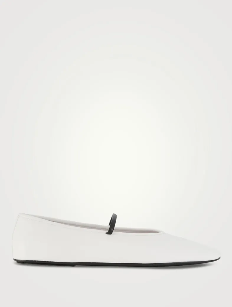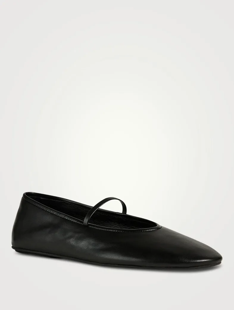 A slim, Mary Jane-style strap elevates these simple and chic flats. They are crafted of a buttery-soft leather and finished with a rounded toe.