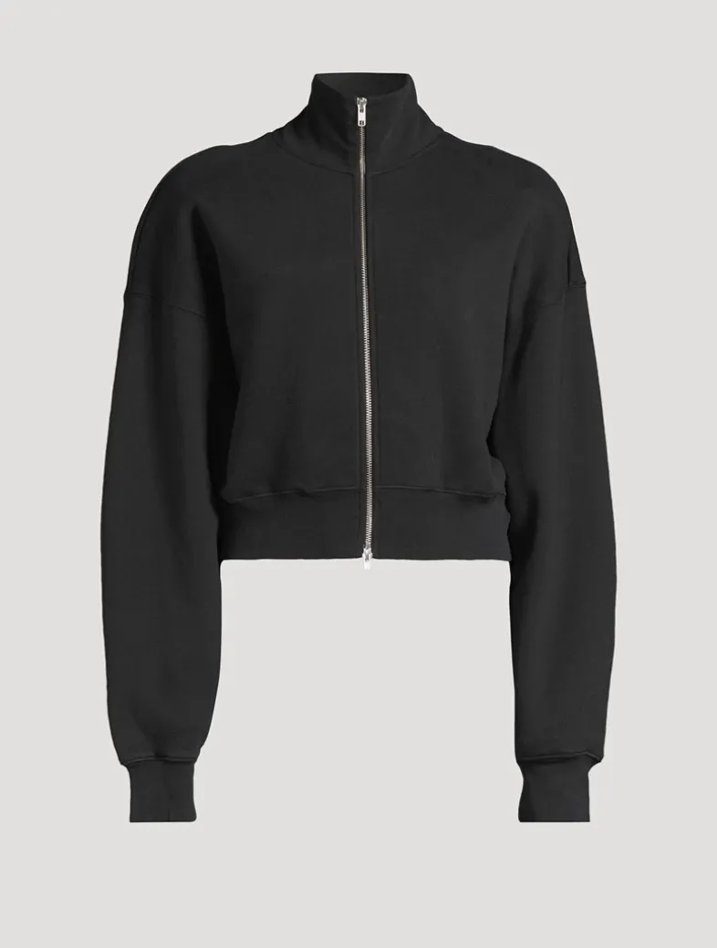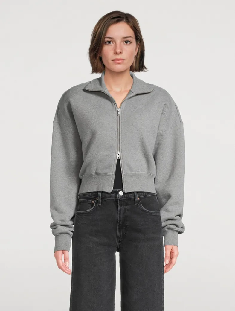 The Darby zip-up is a high-collared sweatshirt with a cropped, boxy fit and exaggerated ribbed hem. Crafted from breathable, soft cotton fleece with just the right amount of drape.