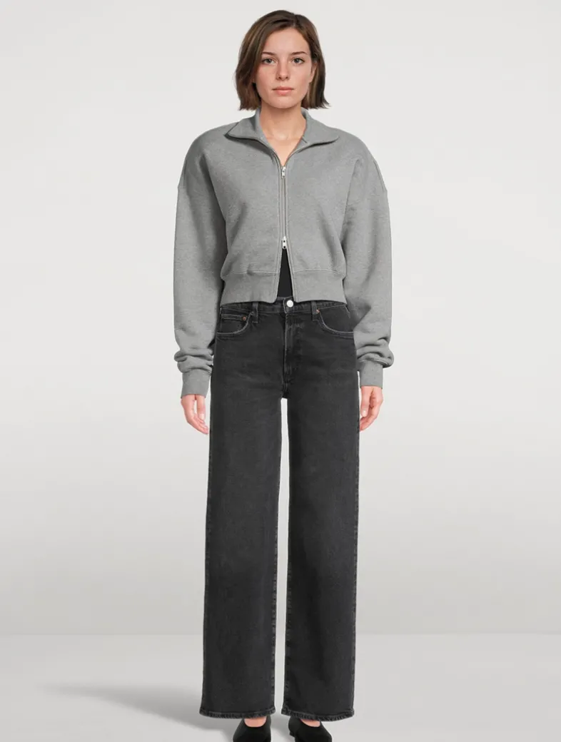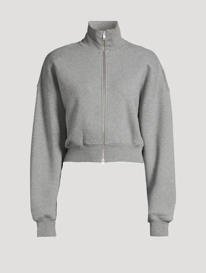 The Darby zip-up is a high-collared sweatshirt with a cropped, boxy fit and exaggerated ribbed hem. Crafted from breathable, soft cotton fleece with just the right amount of drape.