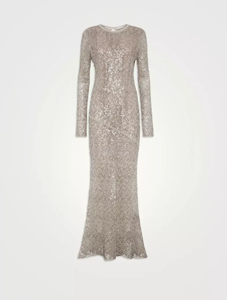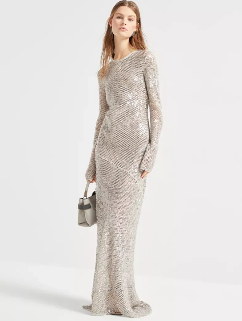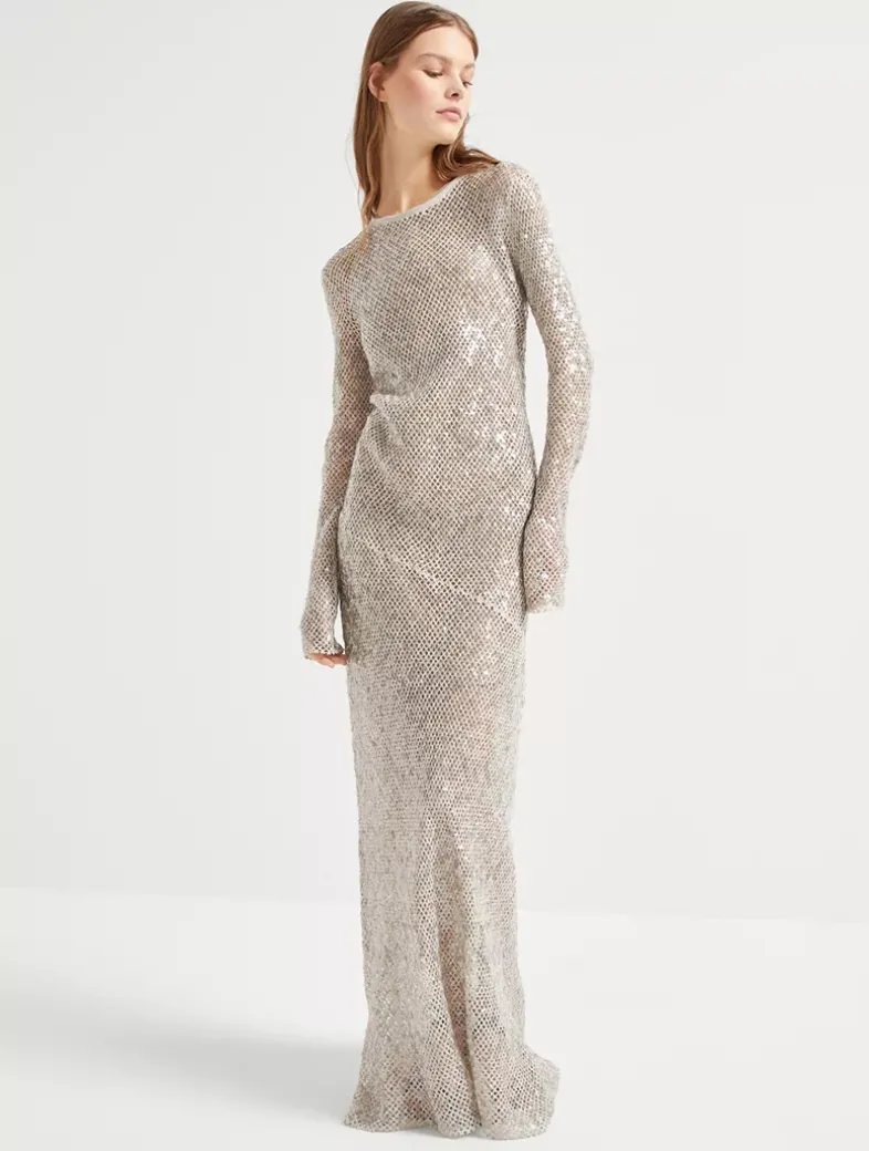 Dazzling net embroidery knit dress in linen and silk
