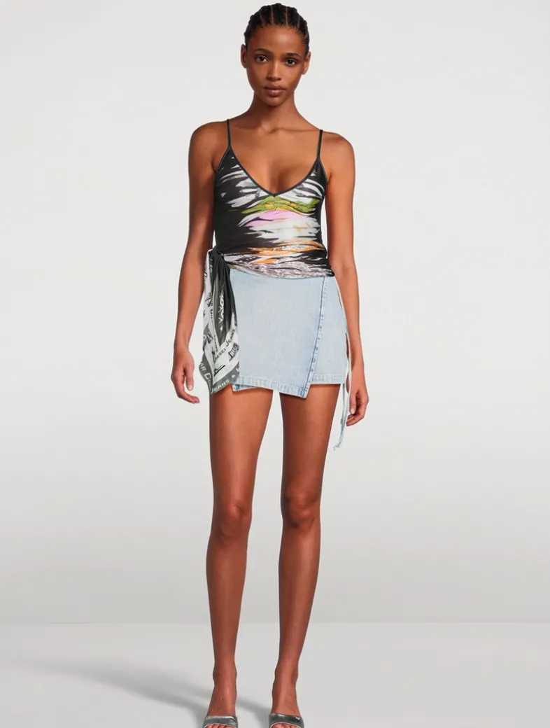 This mini skirt features a wrapped silhouette that can be styled to sit low or high on the waist according to how you adjust the belt. Part of Diesel’s DNA selection, showcasing the brand’s heritage and essential style codes, this 100% cotton denim features a herringbone pattern that creates a subtle striped effect. The bleach-effect marbled wash is enriched by handmade abrasions and dirt hues for a natural, lived-in look.