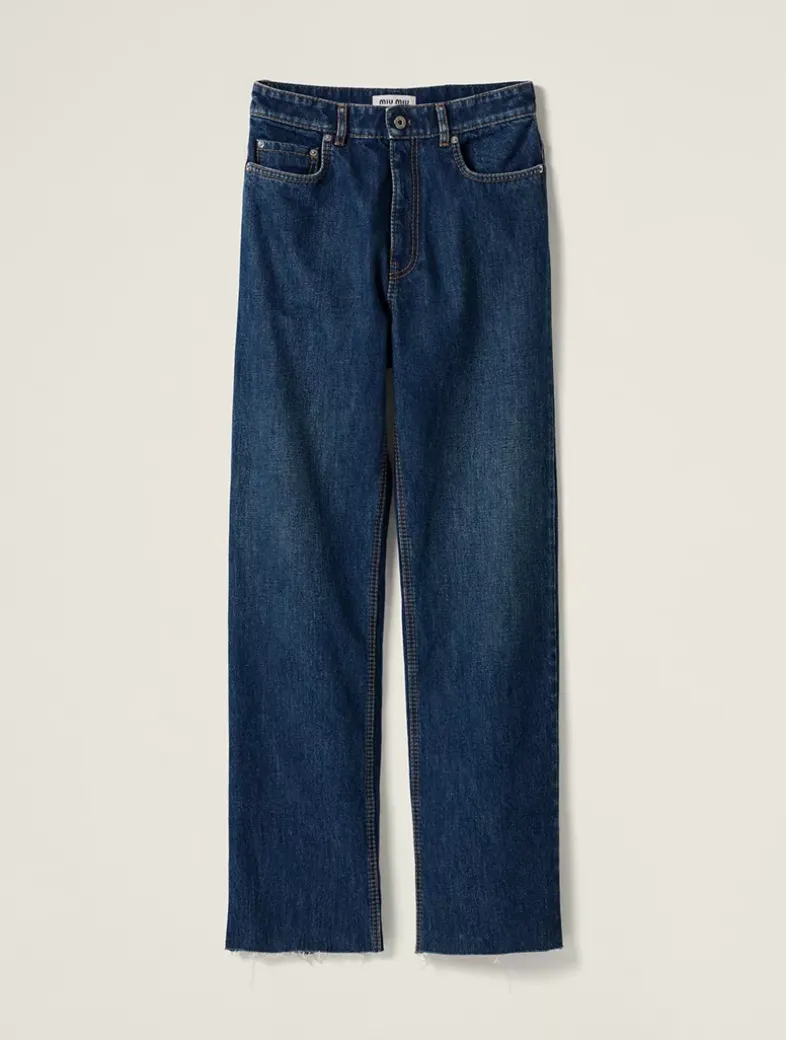 Rinsed denim treatment Regular fit Regular waist Zipper fly with button Contrasting stitching Rounded front pockets with coin pocket Back patch pocket Ironed crease Embroidered logo Total length 114 cm, Size: 25 Hem width: 24.5 cm, Size: 25