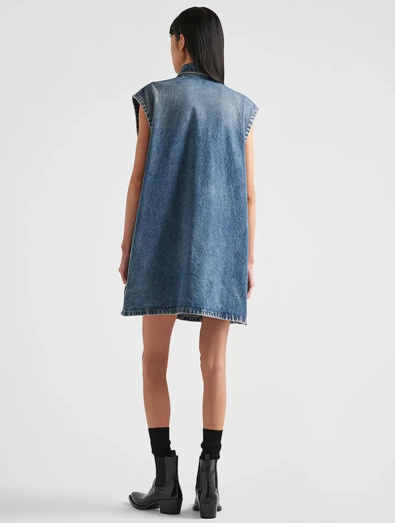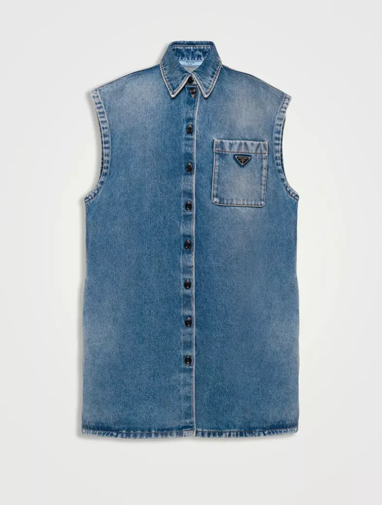 Bleached denim Boxy fit Unlined Shirt collar Front button closure Patch pocket on the chest Contrasting top-stitching Triangle logo Length from center back 85cm, Size:38