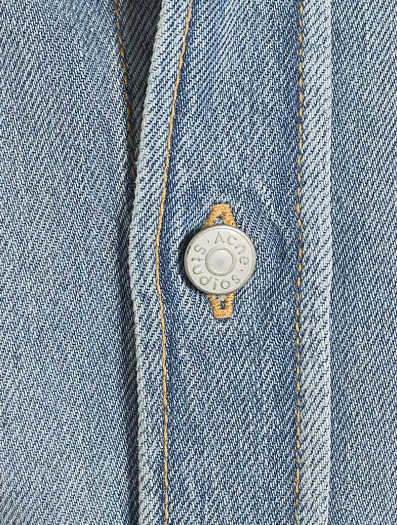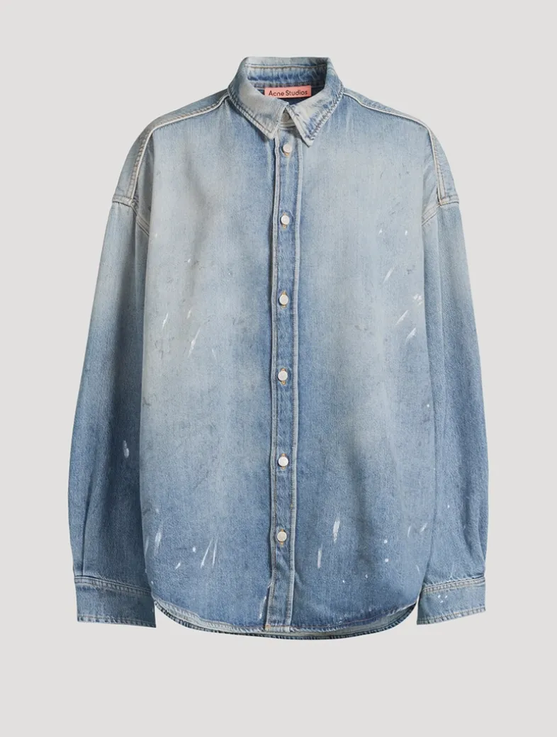 Made in Italy, this button-up shirt is crafted in twill cotton blend denim with tinted and painted mark detailings. Cut to a relaxed unisex fit and below hip length.