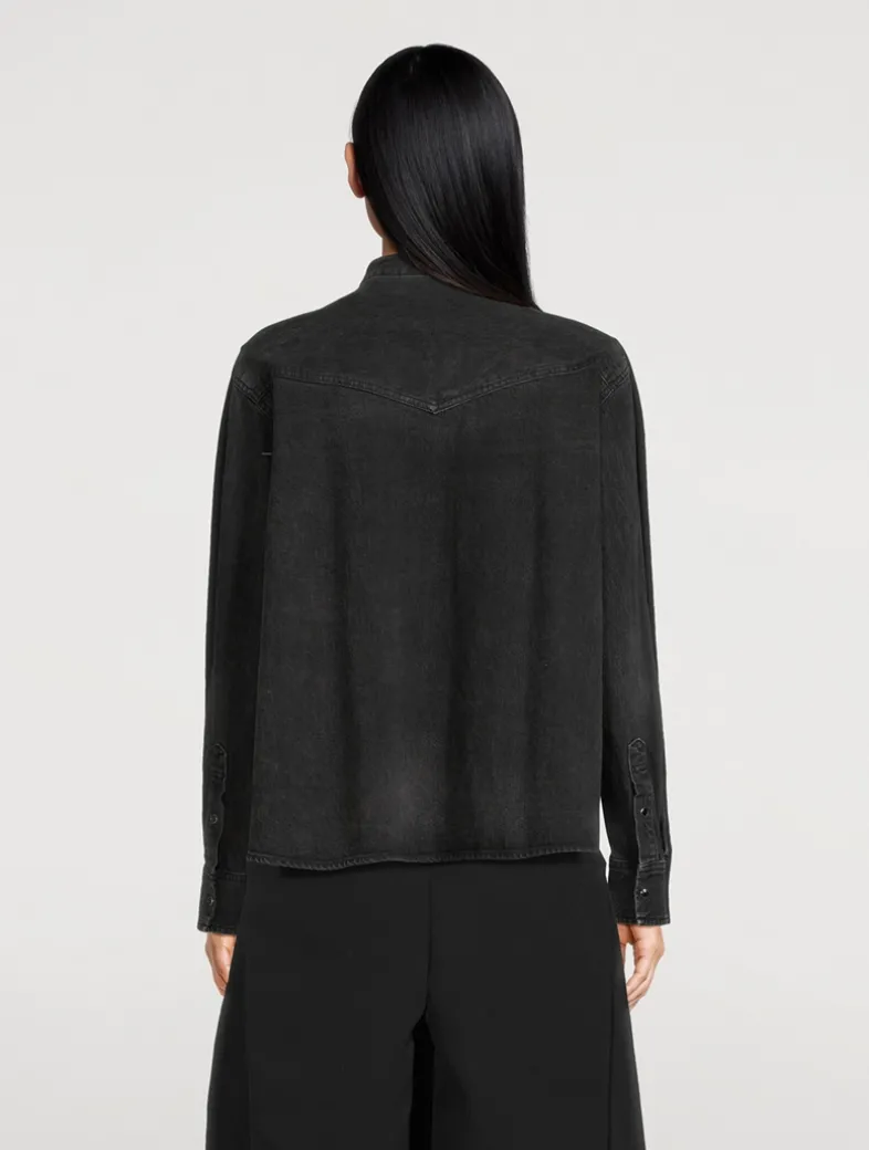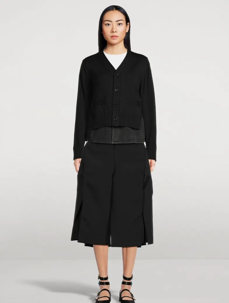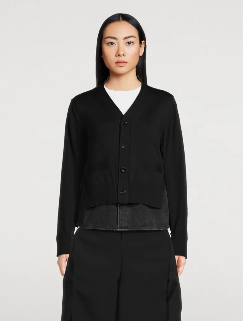 This long-sleeve sweater is designed with a V-neckline and buttoned closure. Crafted in a cotton blend, it is finished with tonal denim details.