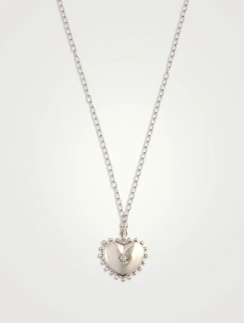 A beautiful, substantial locket is suspended from an oval link chain. A centre starburst in sterling silver is set with a white sapphire.