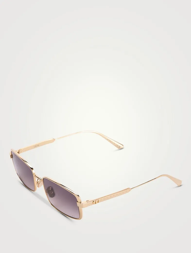 The DiorCannage line showcases the iconic Cannage code on a metal temple. Featuring a low, rectangle shape for a feminine and elegant look, these DiorCannage Rectangular Sunglasses are detailed with branding on the temples and