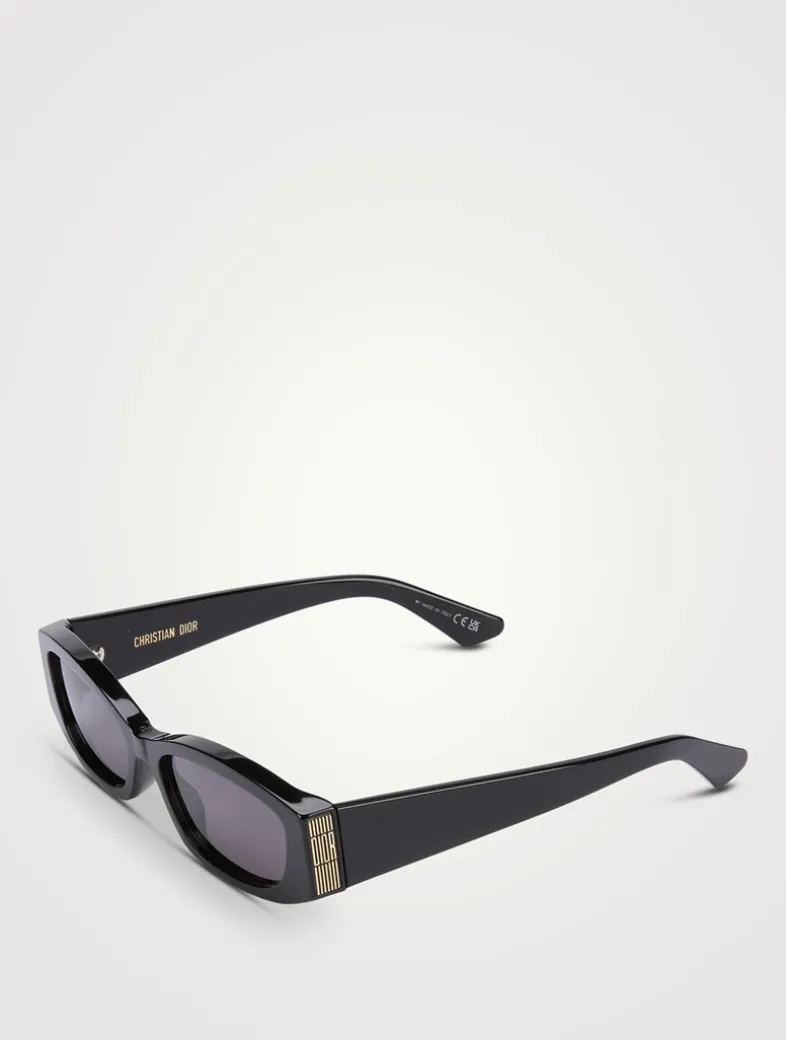 The DiorGraphique line features a bold logo, inspired by Marc Bohan. These chunky sunglasses feature the graphic logo detail at the hinges.