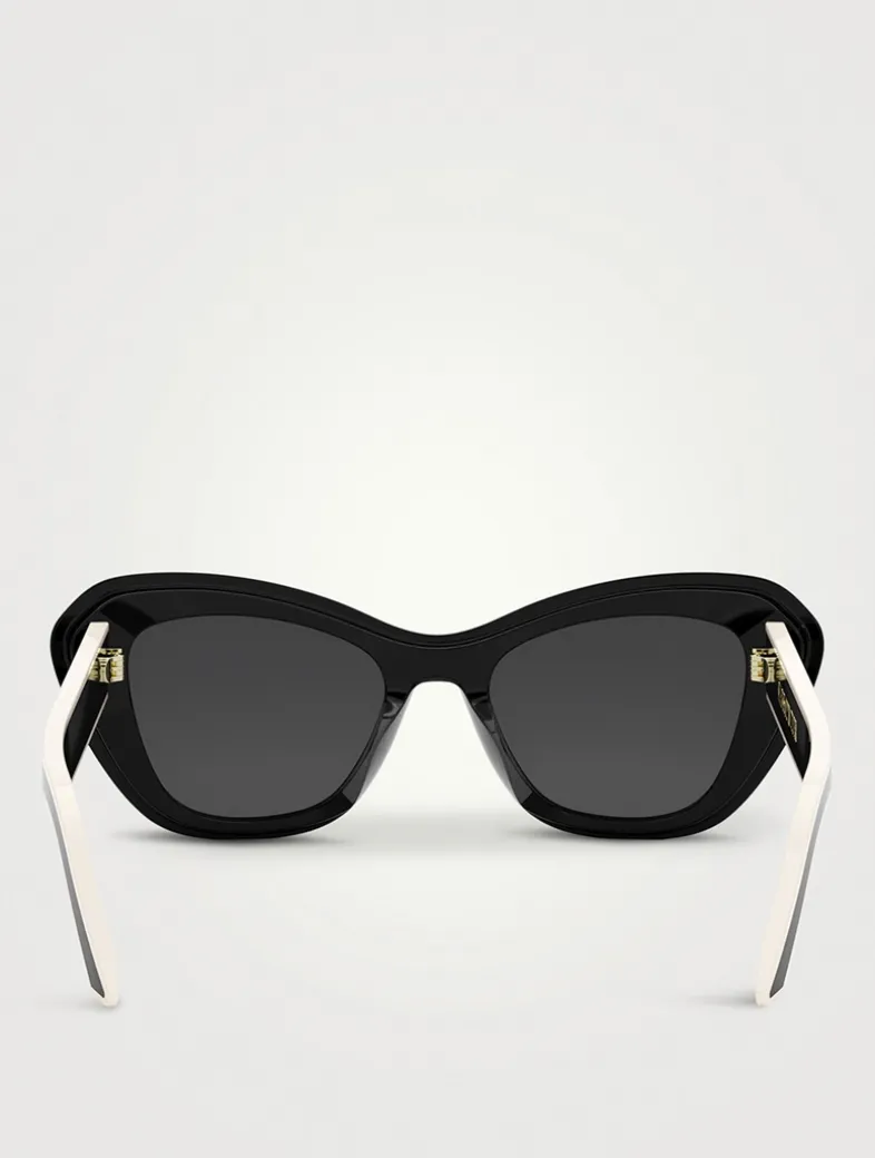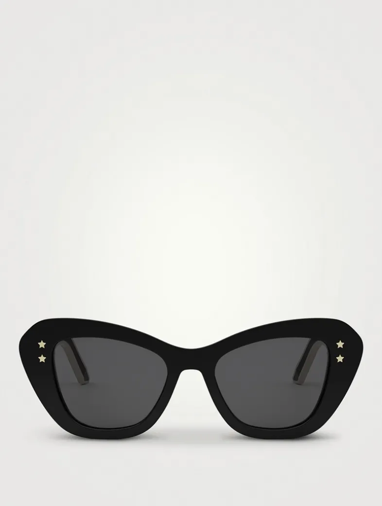 This acetate line is characterized by bold shapes with a statement colour combination. This butterfly style is detailed with contrasting logos and gold metal star pins.