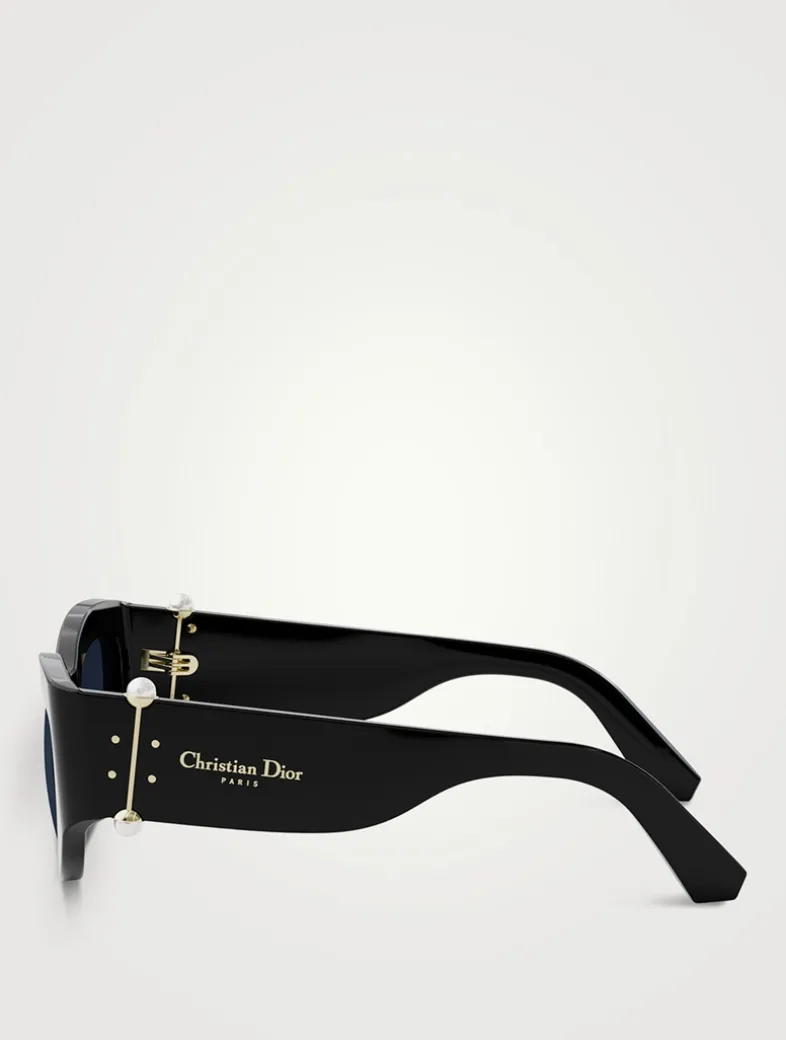 The DiorTribales sunglasses line is inspired by the jewellery range of the same name. These acetate frames feature hinges adorned with faux pearls and hand-applied gold metal Christian Dior Paris logos.
