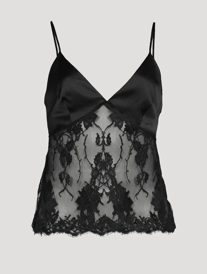 The Dominique Cami features a sculpting silk bust with adjustable straps for a perfectly tailored fit. The French leavers lace tank balances structure and softness, and is finished with a delicate scalloped hem.
