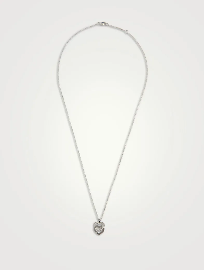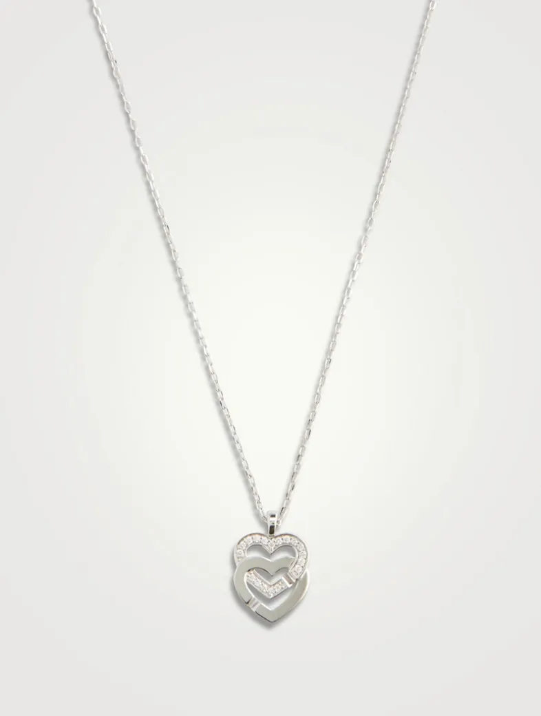 From the Parisian jewellery brand’s Double Cœurs collection. Crafted with a delicate chain, this adjustable necklace features DINH VAN’s signature double heart pendant accented with pavé diamond and notch detailing.