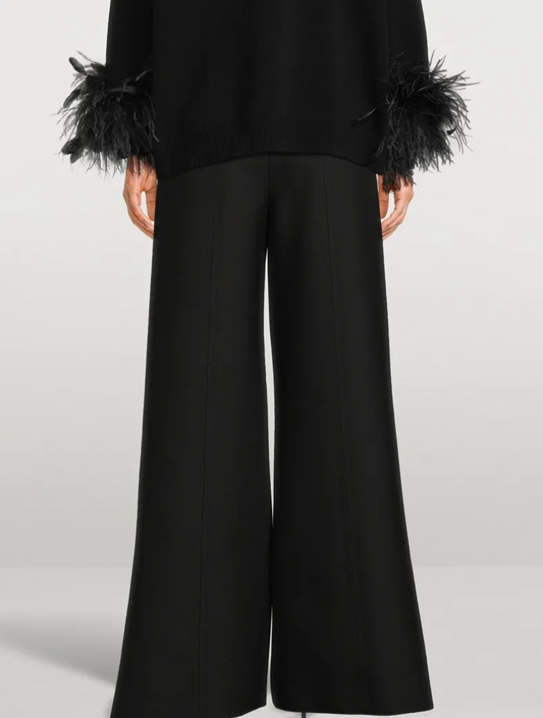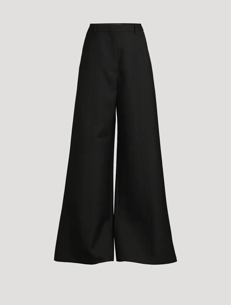 Made of luxe virgin wool with a hint of silk, these double compact drill trousers exude a refined simplicity. They are cut to sit high on the waist and fall to a relaxed wide leg.