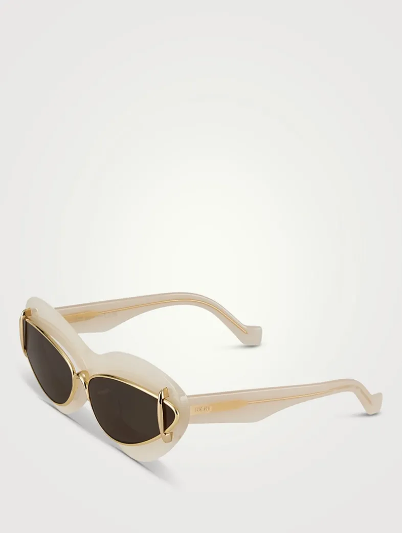 Layering acetate and a metal cat eye frames, these sunglasses feature only one pair of lenses and the Loewe logo at the temple.