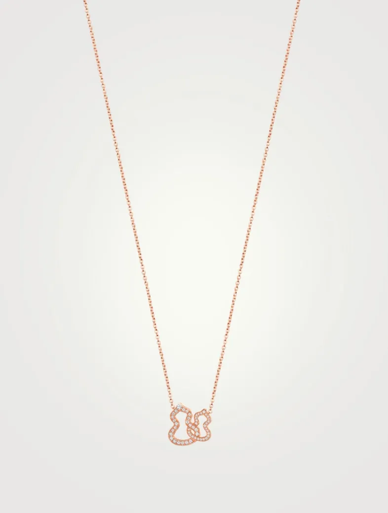 Echoing the curves of the lucky number 8, Wulu is the most powerful symbol of good fortune and positive energy in China. This chain necklace features two linked pendants encrusted with 50 diamonds.