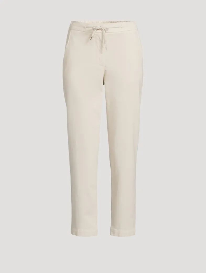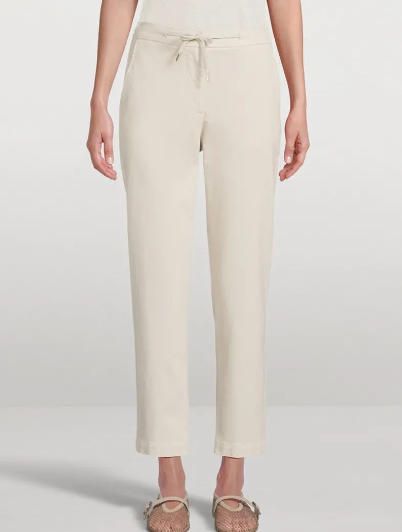 Crafted from a blend of cotton and modal with a hint of stretch, these trousers offer a luxuriously soft and feminine silhouette. Topped with an elastic drawstring waistband.