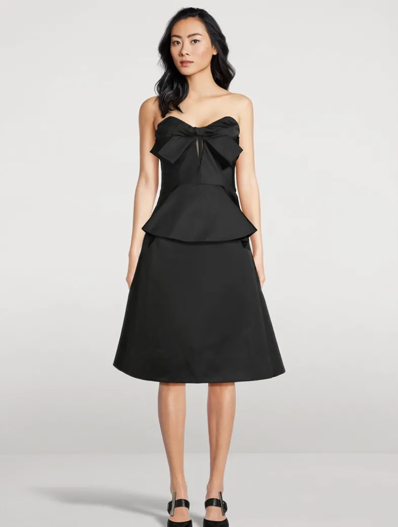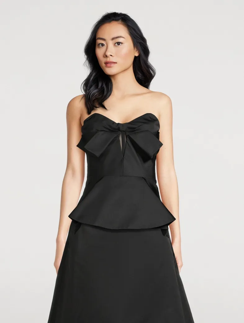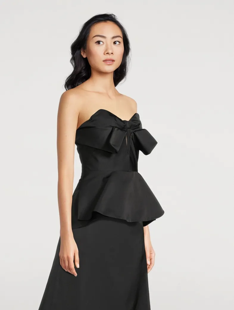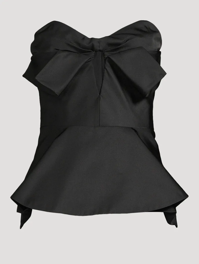 This strapless corset top is crafted in silk-blend poly duchesse. It has sculptural draping at the neckline, a structured bodice with cut-out detailing, and a flared peplum hem. Finished with a back zip fastening.