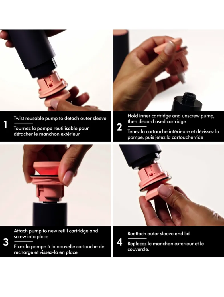 - Pump to dispense product. Start with 1-2 pumps adding more as needed.