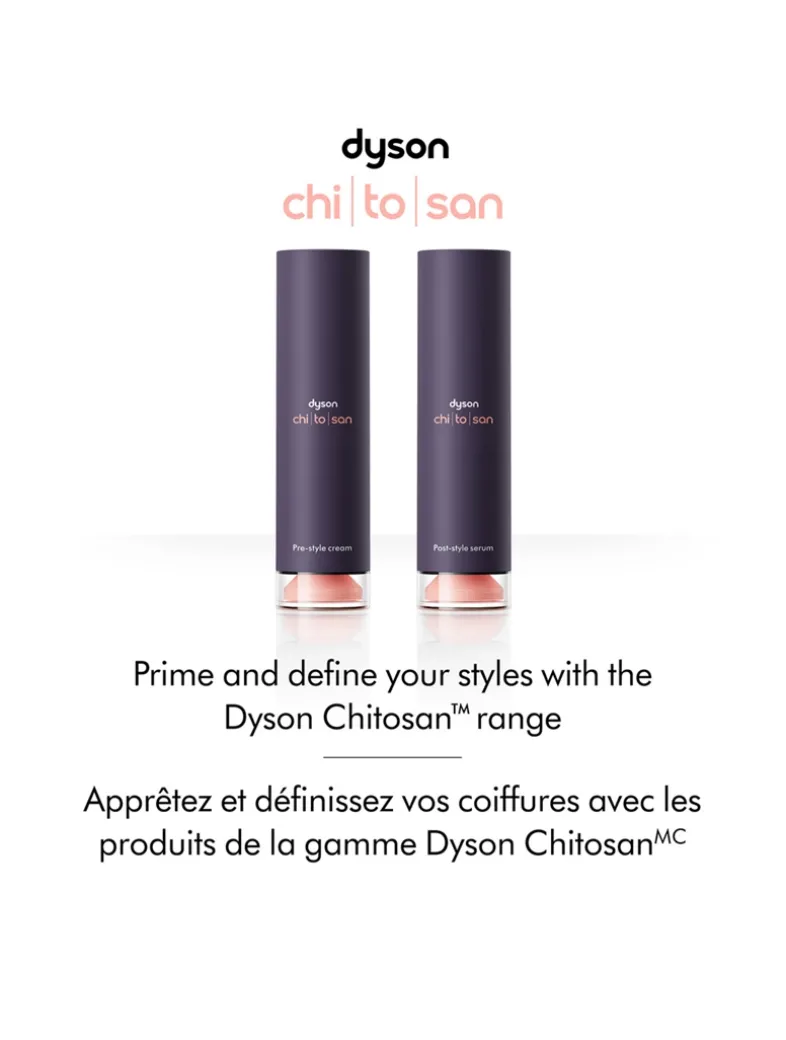 - For best results, use with the Dyson Chitosan™ Pre-Style Cream on clean, wet hair before styling for maximum retention.