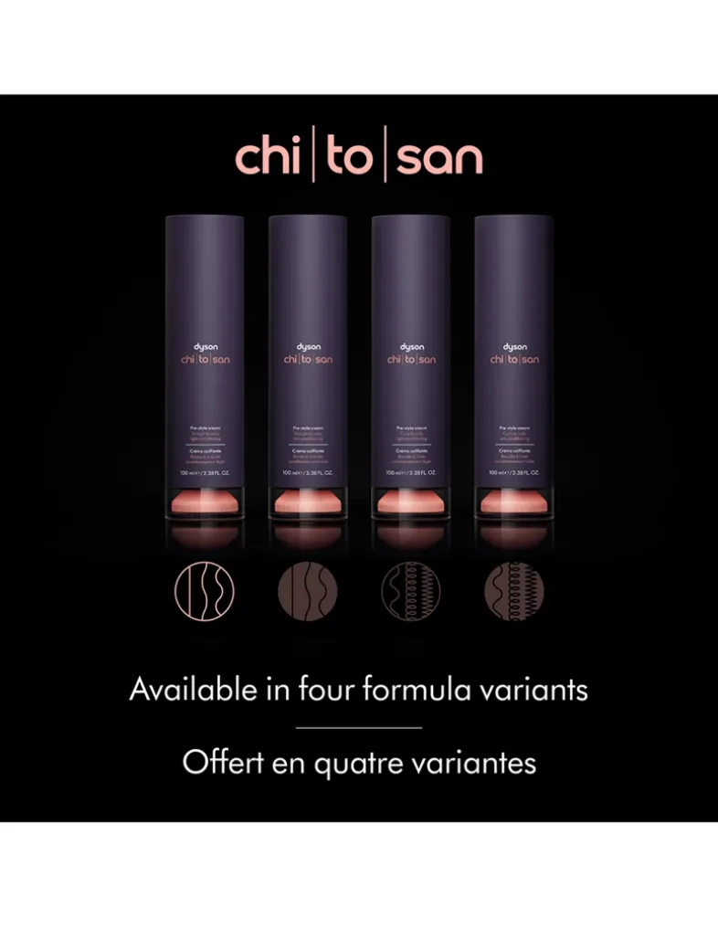- Dyson Chitosan™ Pre-style cream Straight to Wavy, Light Conditioning is developed for hair that’s naturally straight, wavy, or has S-wave shape. Best suited to thinner hair strands that are easily weighed down
