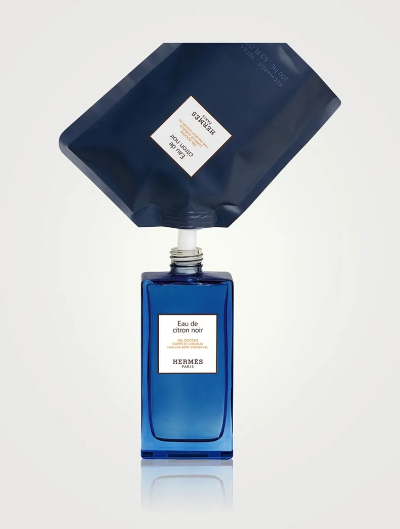 Eau de citron noir expresses the joyful and generous freshness of the colognes in the form of a shower gel. Another way to wear fragrance. The straight lines of the bottle are embellished with scarlet, emblematic of Eau de citron noir, and two signature details: the H imprint of the base and the Clou de Selle engraved on the pump. The bottle is made of recyclable glass. The Eau de citron noir hair and body shower gel refill can be used to replenish the 200 ml bottle. A responsible gesture, integral to an object created to last. The shower gel gently cleanses and perfumes the skin and hair for a tender and invigorating ritual. An environmentally friendly formula that forms a pleasant, easy-rinse lather.