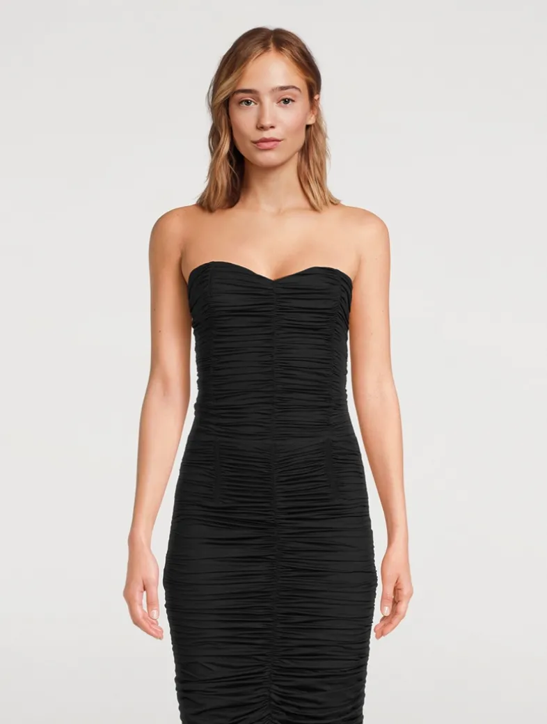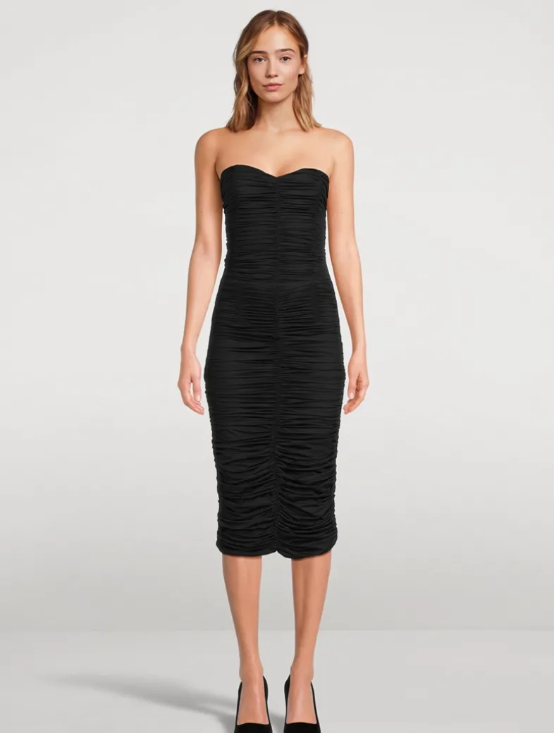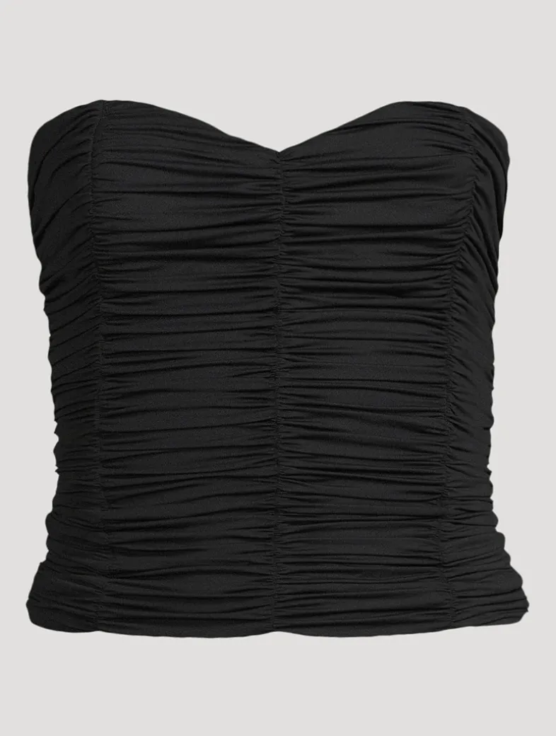 Perfectly ruched Austrian Jersey acts as a playful finish to this eternally chic strapless bustier. Finished with a subtle sweetheart neckline and built-in boning for structure.