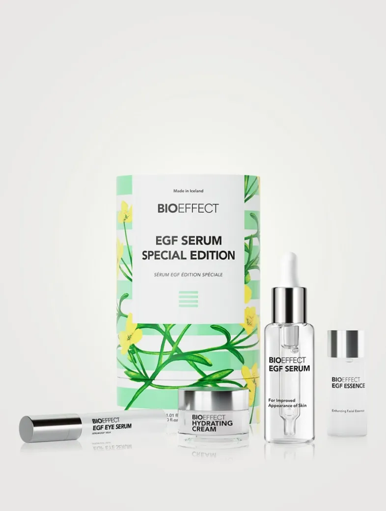 The EGF Serum Special Edition features the award-winning EGF Serum Large, a groundbreaking biotech growth factor serum, formulated with only seven active ingredients that help prevent and target signs of skin aging while enhancing moisture levels.
