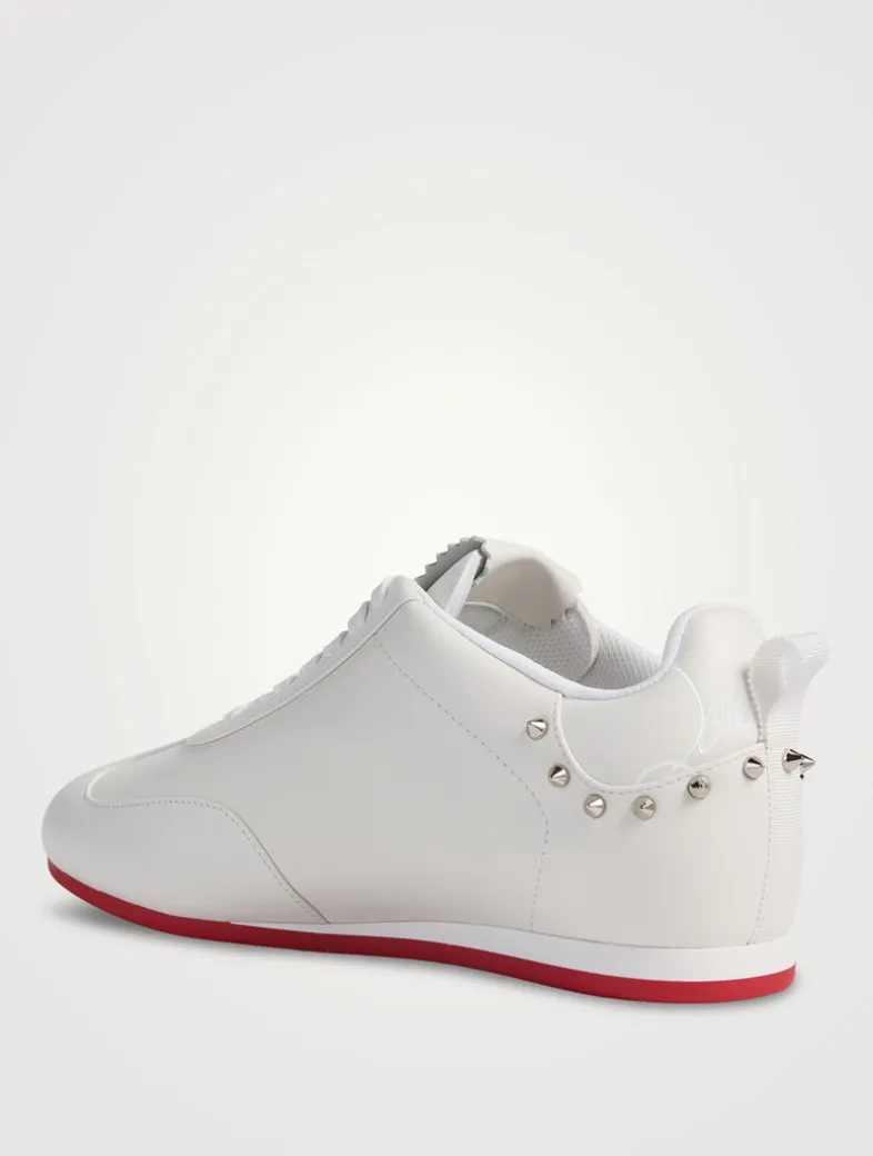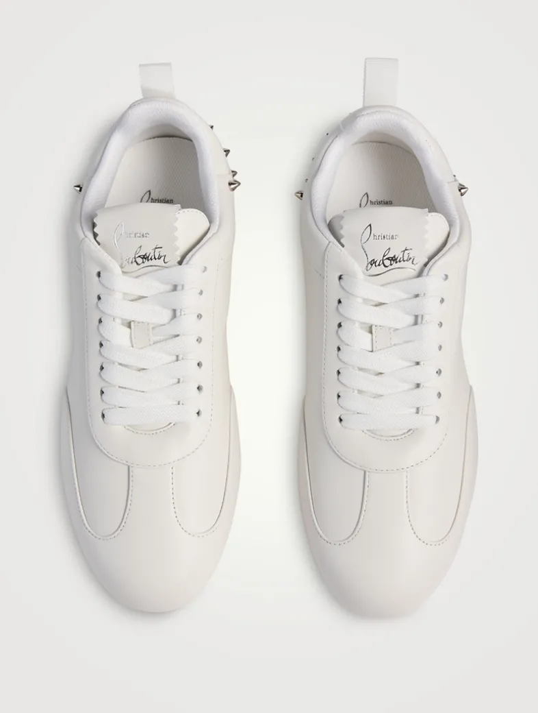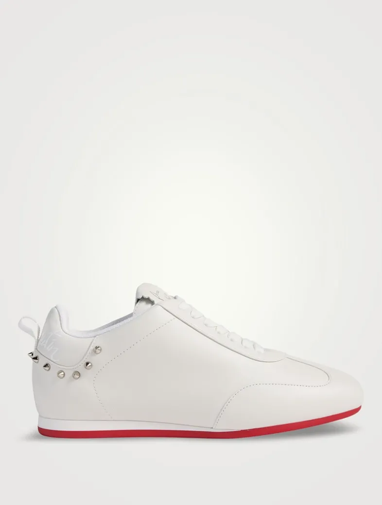 Crafted from buttery leather, thee low-top sneakers are elevated with signature spikes around the heel.