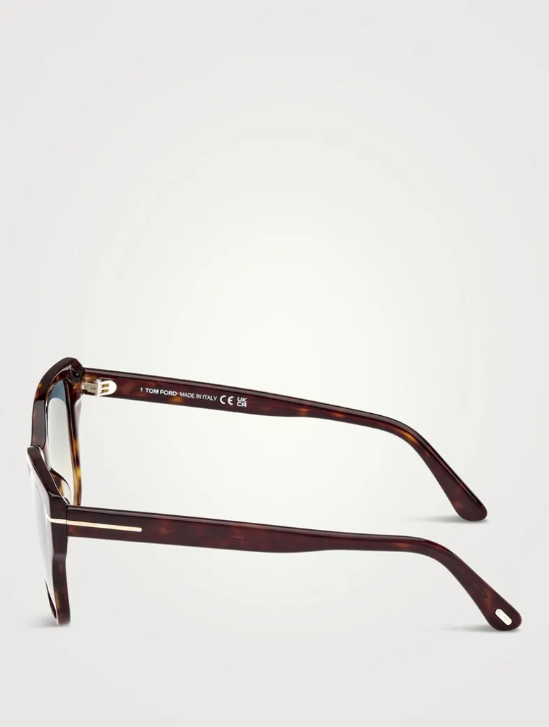 Designed with a soft cat-eye shape, these sunglasses are enriched by the metal ‘T’ temple decoration and metal ‘T’ logo. Made in Italy, and finished in bio-based acetate with polarized lenses.