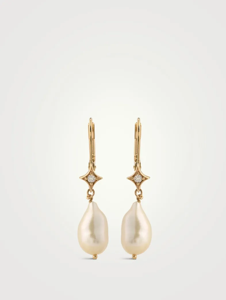 Emilia 14K Gold Gothic Star Baroque Pearl Drop Earrings With Topaz