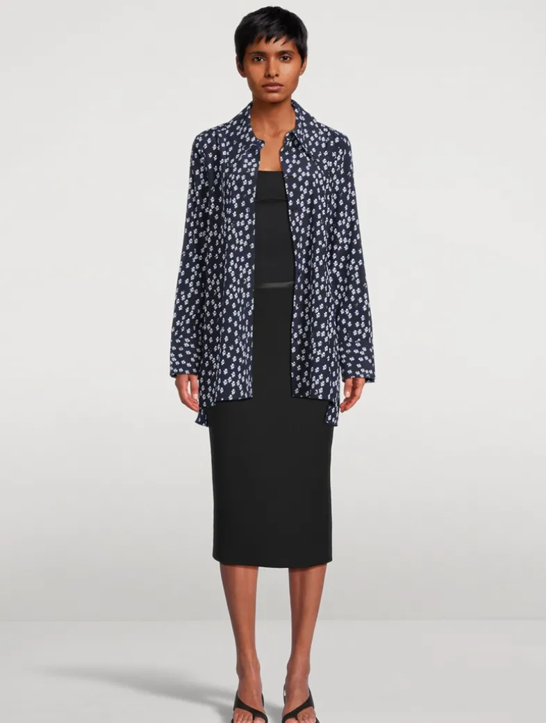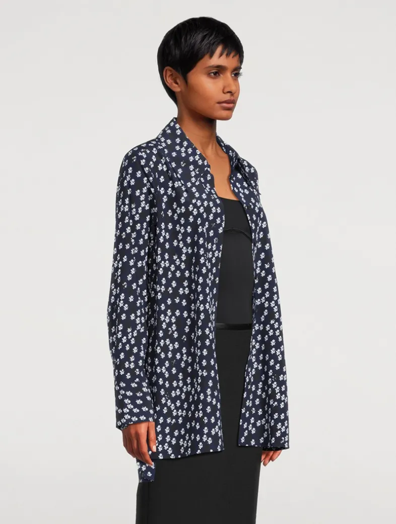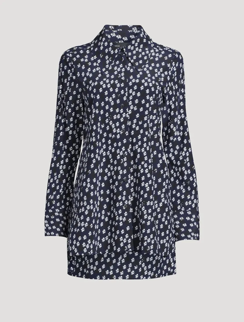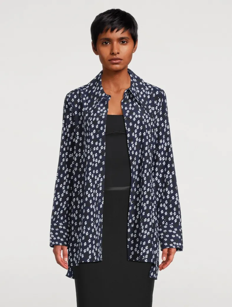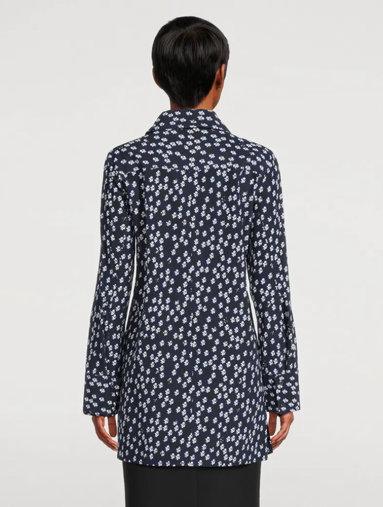 The Emmeline Shirt features a delicate floral print throughout and is tailored to a button-down silhouette with a point collar and a subtle A-line finish.