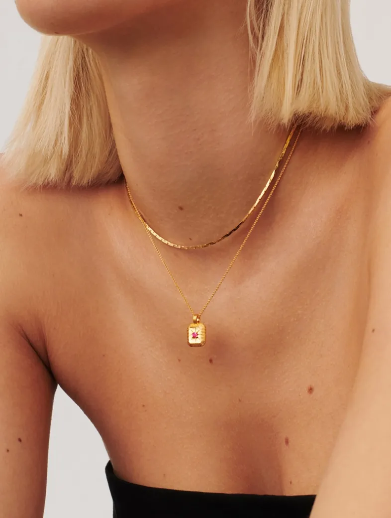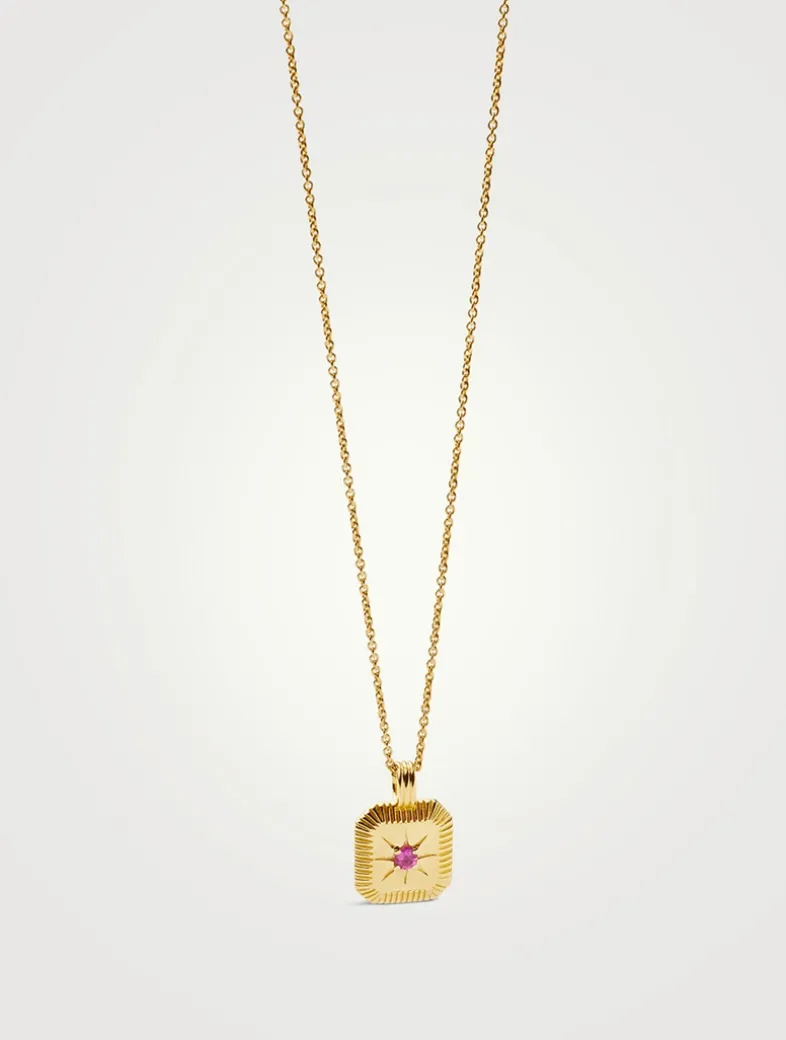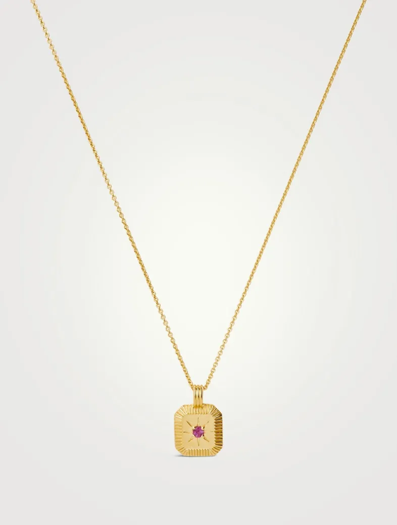 Bring your birth month a whole new meaning with a personalized gemstone necklace. The ridged pendant, held on a short chain necklace, holds a natural pink tourmaline stone, symbolizing love and compassion, and is embellished with a central star motif. The perfect gift for anyone born in October.