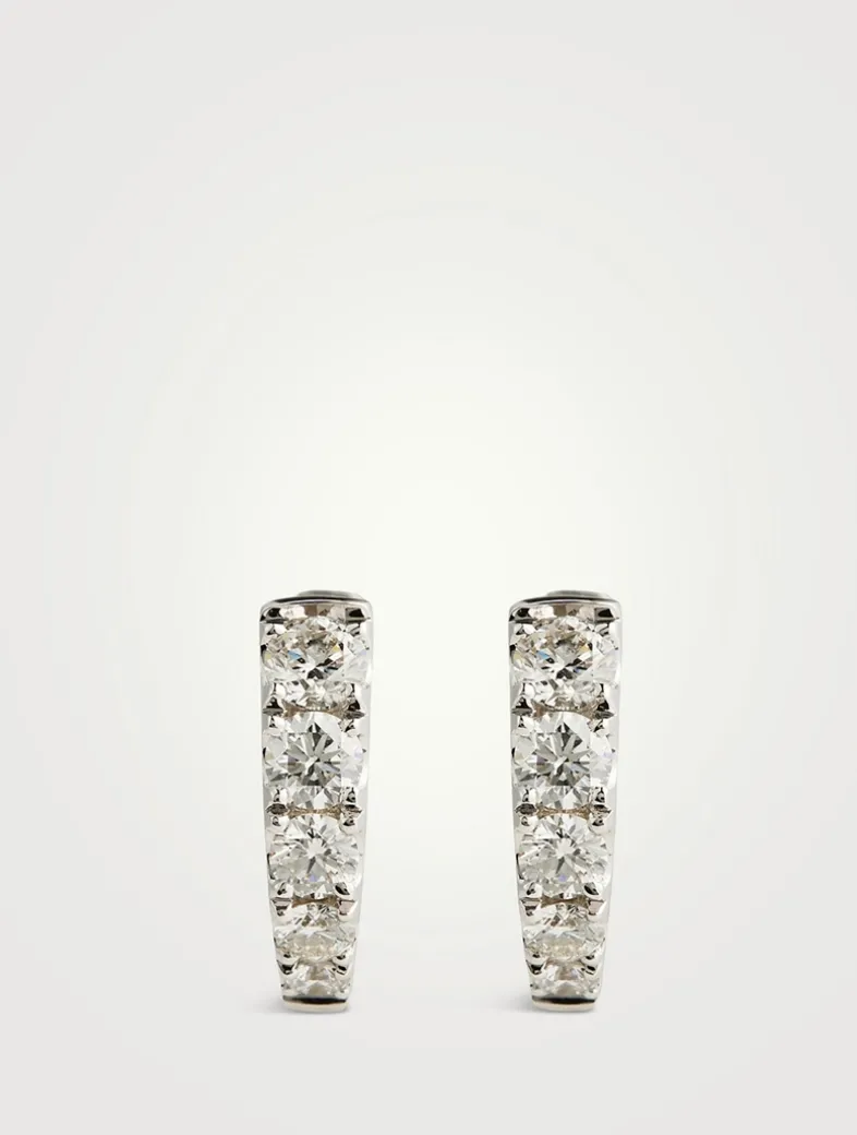 Expertly crafted in 18k gold, these essential huggie hoops feature graduating diamonds in prong settings.