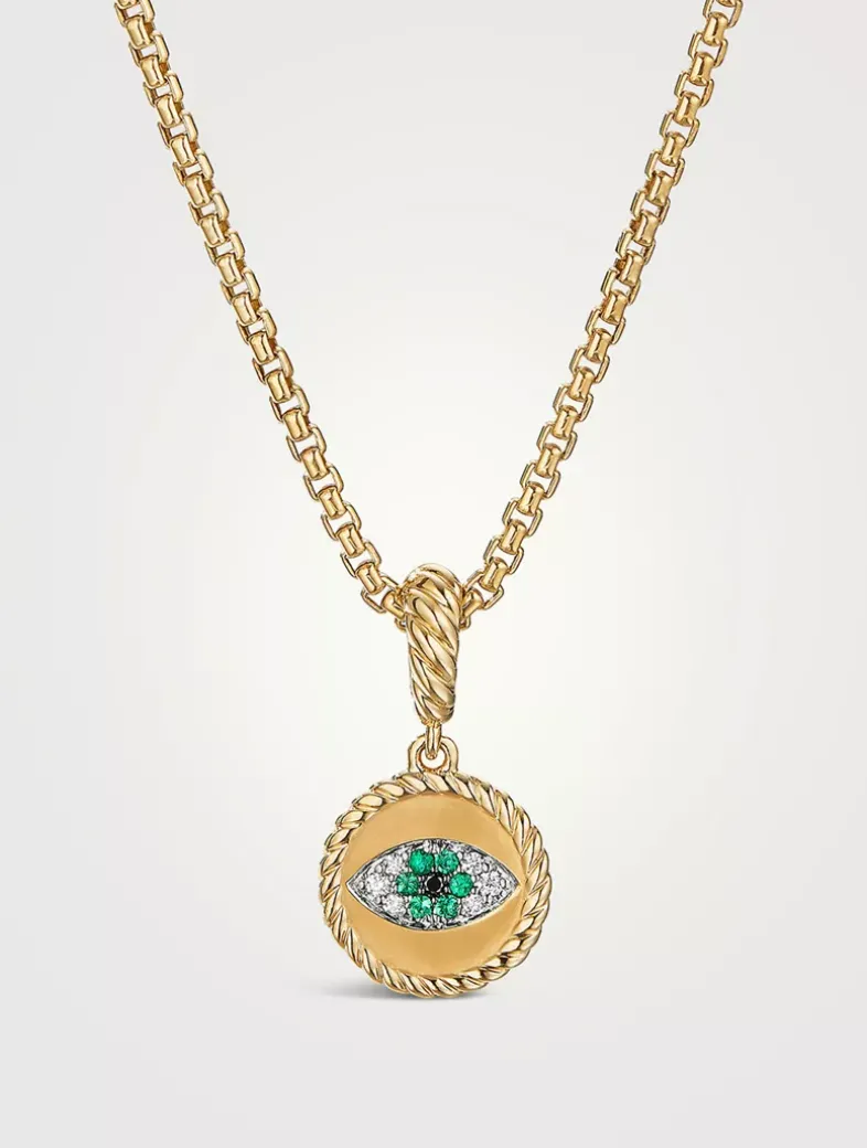 Evil Eye Amulet In 18k Yellow Gold With Pavé Emeralds And Diamonds