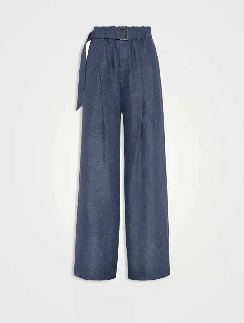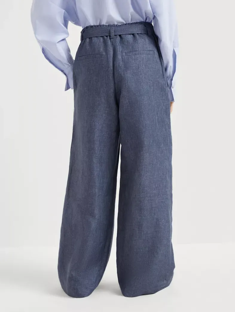 Denim effect linen explorer track trousers with monili