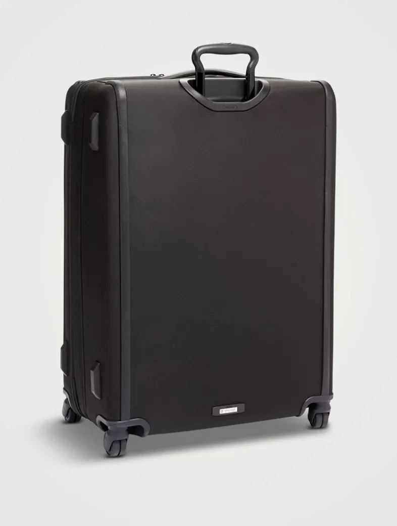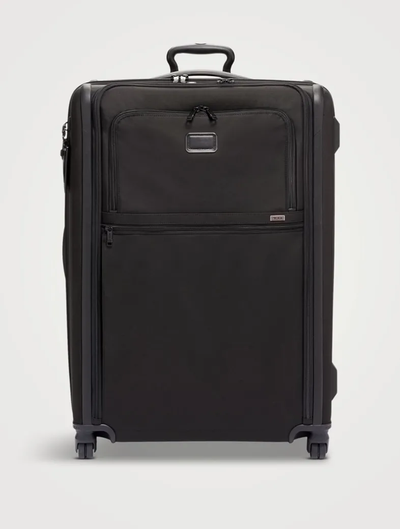 This extra-roomy case accommodates what you need with ample space, as well as innovation, superior performance, and best-in-class functionality. Its exterior features multiple zip pockets, retractable top and side grab handles, bottom grab handle, and four dual spinner wheels. The interior has a removable garment sleeve with fiberglass rod, hanger bracket, compression straps, Lever Lock™ two stage expansion system, and multiple zippered pockets.