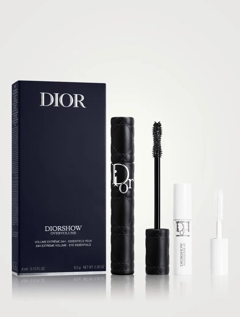 The Eye Essentials Set features the Diorshow Overvolume Mascara and Maximizer 4D Lash Primer-Serum for extreme volume, bold lashes, and lash-by-lash definition.