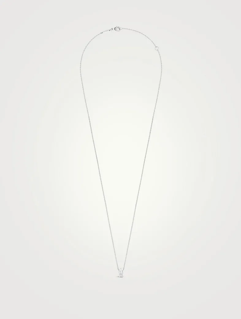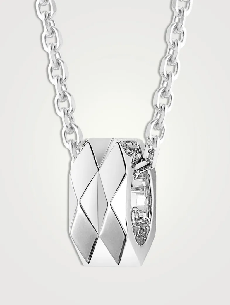 This hammered trace chain necklace features the Facette pendant, in 18k white gold.