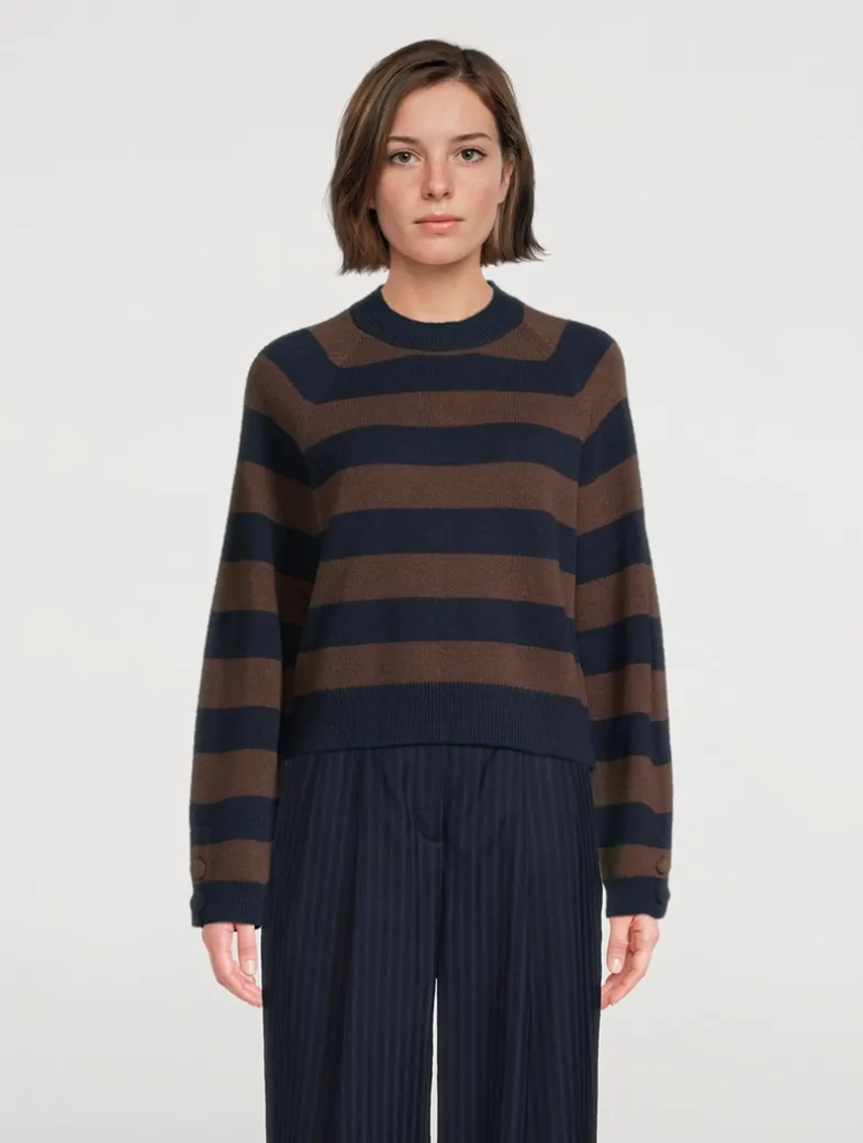 FTC® Stands for Fair Trade Cashmere. The family business was founded in 2003 and is now in the second generation. All of FTC®s products are made in their own manufacturing plants and are Made in Green by Oeko-Tex certified. Patterned with stripes, this midweight cashmere sweater is finished with knit-covered button details on the sleeve.