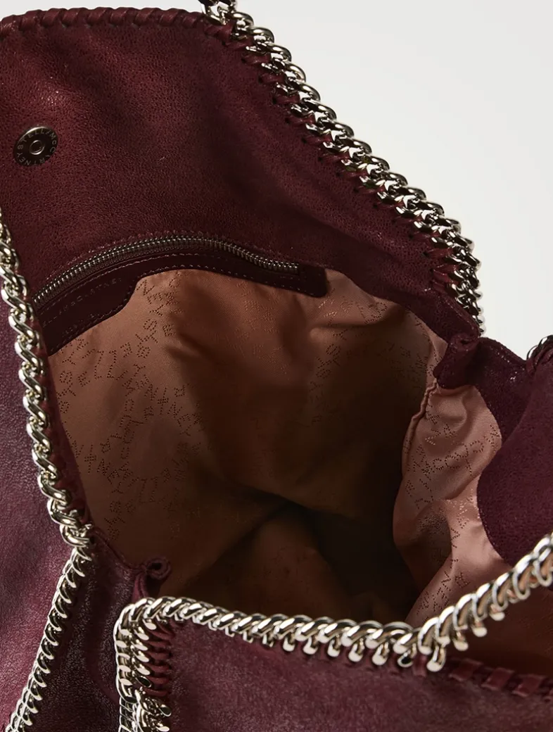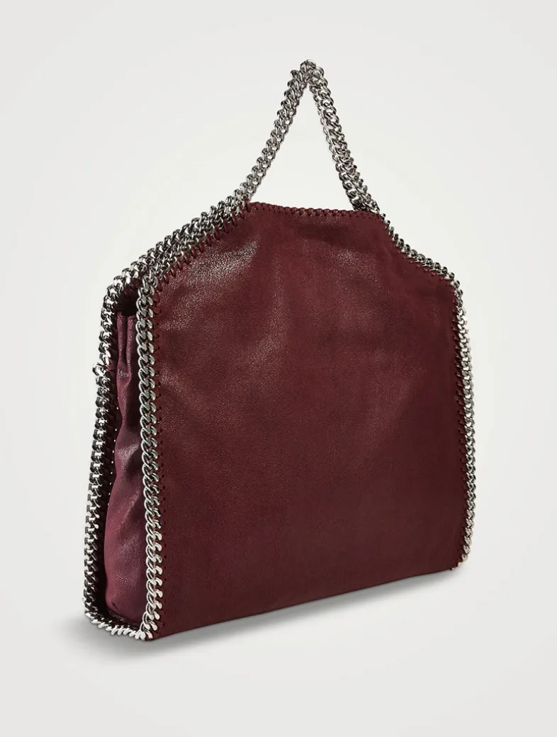 Reenergizing the time-honoured bag, the Falabella fold-over tote is an adaptable, wear-anytime choice. Crafted from grained vegan Shaggy Deer fabric with an iconic Falabella chain framing its edges.