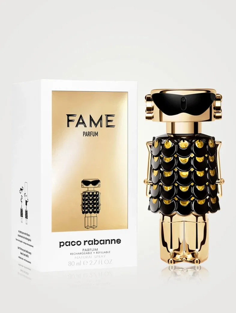 Powered by multifaceted femininity, new Fame Parfum by Rabanne reveals her most enticing facet. Sensual jasmine meets hypnotic incense and irresistible musk in an intense fragrance blend that’s just as famous as her. Feel magnetic. Be the star. Be Fame Parfum.